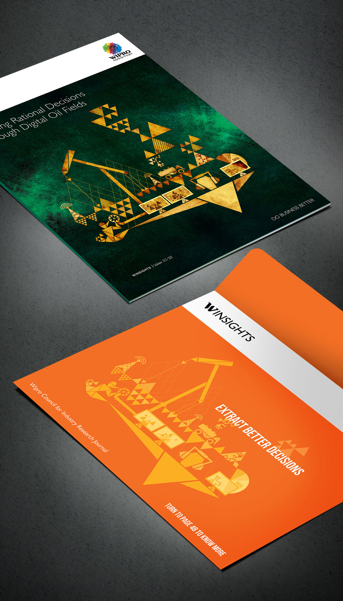 Objective: Design a compelling cover and pouch for the Wipro Winsights brochure that visually represents the journey from traditional oilfields to cutting-edge digital operations—highlighting innovation, data-driven transformation, and future-ready energy.